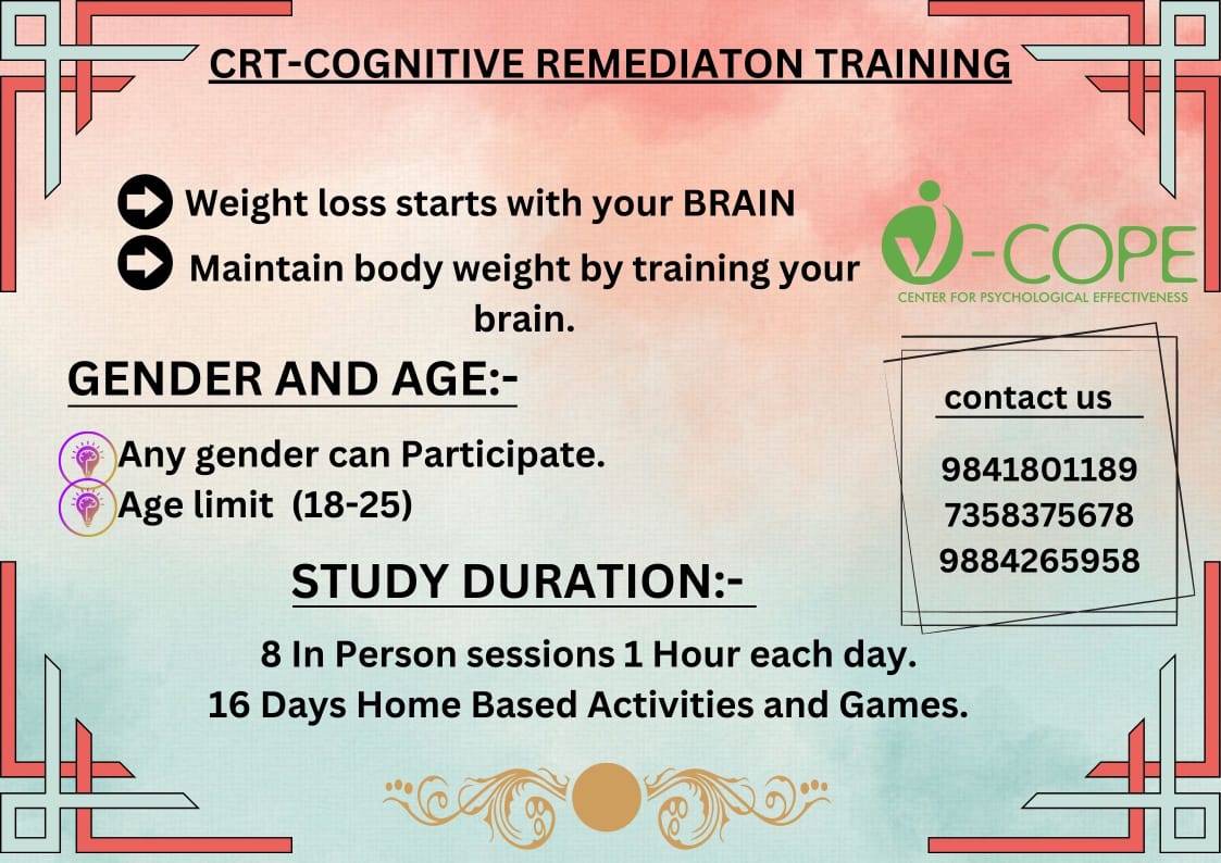 “ V – COPE “ is an initiative taken by Ms.Vandhana, Clinical Psychologist, her vision being “Aware, Arise and Act’’ She strives to make people Aware of psychological disorders and helps them to Arise to a happy, contented life and Act towards the Physical, Mental, Emotional and Social well-being !!